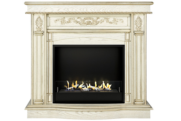 Биокамин в портале Firezo Cardinal Белый дуб патина золото